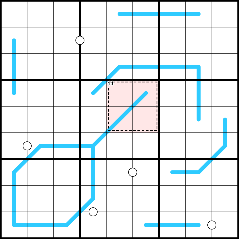 Cages: the sum of the digits inside the cage is equal to the small number in the top left corner.