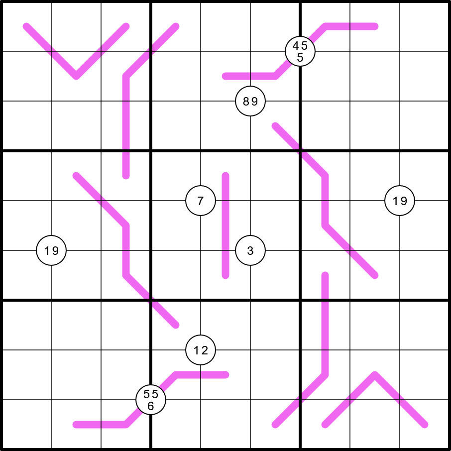 Renban lines: purple lines contain a non-repeating set of consecutive digits in any order.